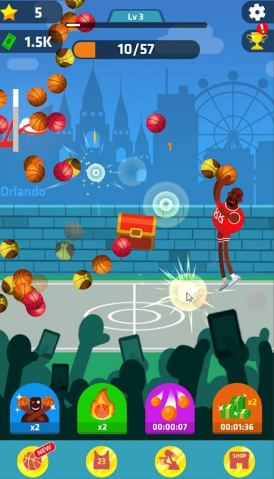 更快点击屏幕以更快地获得积分!升级您的统计数据,成为这个闲置点击游戏中最强大的篮球运动员!