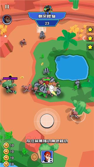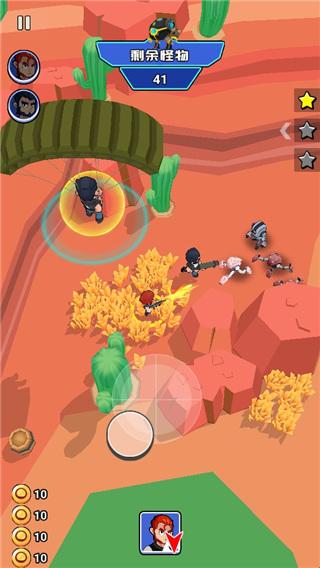 荒野大作战是一款十分休闲的射击闯关类游戏,精美Q萌风格的游戏画面搭配丰富多样的射击竞技玩法,给玩家带来无与伦比的游戏体验!玩家只需要根据关卡顺序以此进行闯关,操控角色进行移动即可,在移动的过程中人物会自动进攻敌人,碰到无法战胜的对手时,可以占据有利地形来躲避敌人的攻击,从而寻找时机消灭敌人,同时还有个性的角色人物和海量的武器道具等你来解锁体验,要知道,全新的人物角色所拥有的技能也会增强,不同的武器杀伤力也不一样。除此之外,游戏还有多个场景地图可供选择,玩家可利用灵巧飘逸的走位进行游戏。