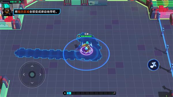 1、下载进入代号RnB游戏,在乐之城中音乐即是力量,拖动摇杆控制角色移动;