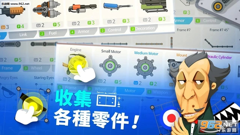 透过收集道具和升级组装一台更为强大,独一无二的超级坦克!