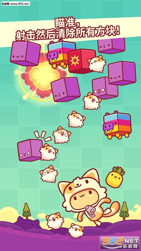穿上你的猫猫衣,在五彩世界中完成任务,阻止邪恶的方块博士还可以制作可爱的Piffle球来收藏。