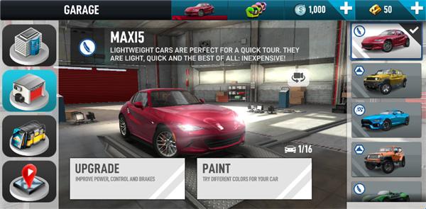3、通过赚取奖励来升级车辆,解锁更多赛道以及改变外观。
