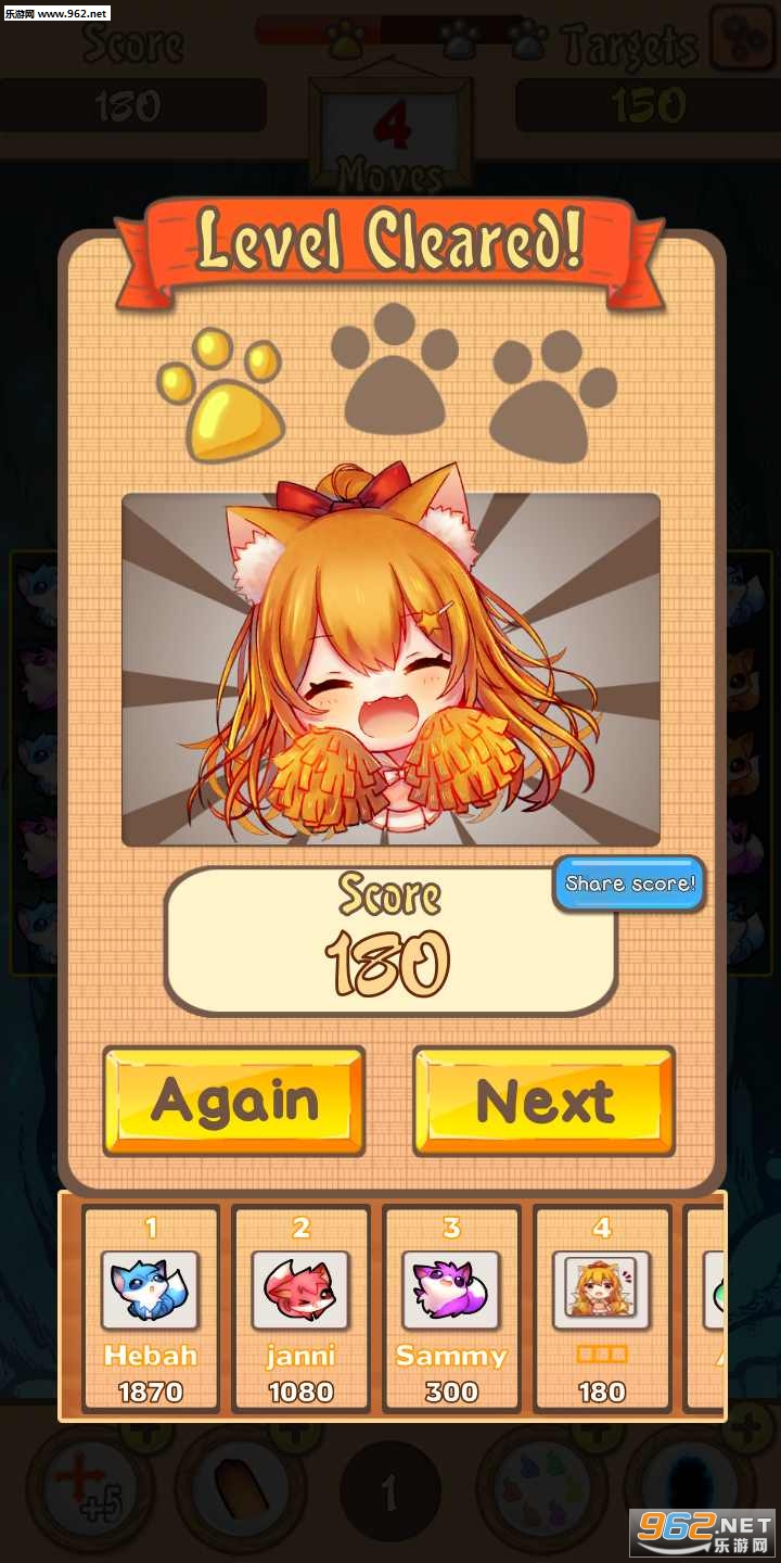 非常不错的一款消除游戏,激萌可爱的二次元的角色造型,每一个消除的方块都是一只可爱的狐狸的形状,玩法简单易上手,整体的操作也非常的简单,喜欢此类型游戏的亲们可以尝试下哦。