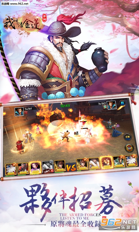 《我叫潘金莲》震撼来袭!全新跨服战震撼降临,水泊梁山108单汉镇魂将夺取!辕门挑战、军团BOSS、跨服竞猜、全服赛马以及3V3实时对战等全新玩法等着你!超炫3D效果,震撼4K画质,模拟真实环境堪比大片,战斗已经拉开帷幕,现在就带上兄弟,上梁山!