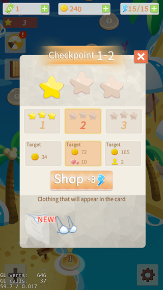 2、游戏采用的是关卡模式,每次闯关都要花费体力值哦。