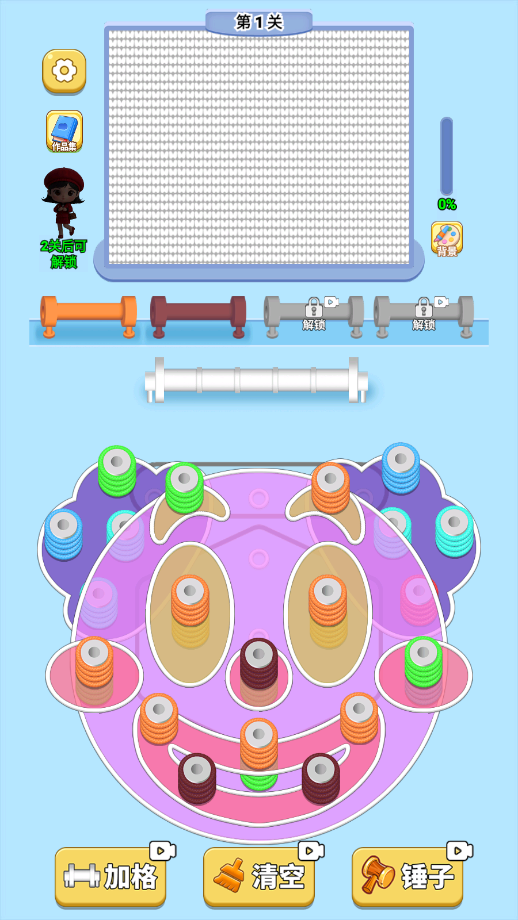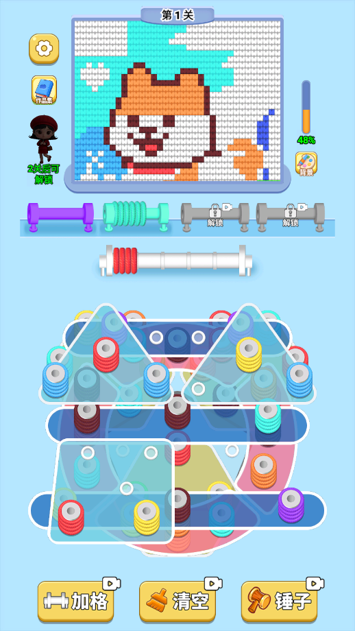 按照上方槽位的颜色,选择下方对应的毛线缠绕在上面,进入十字绣绘画