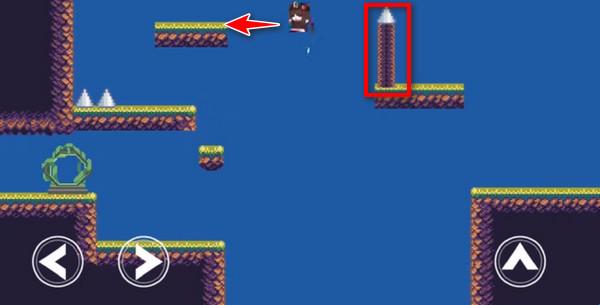 2、注意,第一个陷阱要出现了,我们快速跳上去触发陷阱,然后立马回到安全的小台阶上