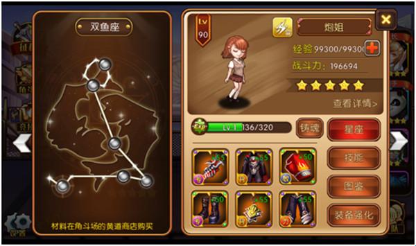 3、最后能在角斗场中更胜一筹的法宝就是升级英雄的星座啦,升级星座的材料需要在角斗场的黄道商店购买
