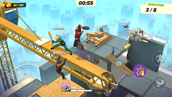 忍者派对最新版(Ninja Party)是一款趣味十足的多人竞技对战游戏,玩家将化身忍者投身快节奏战场。在游戏中,玩家创建角色后可以匹配全球玩家,左边操控移动,右边释放攻击跳跃翻滚,在多样地图中穿梭跑酷。对局里拾取随机道具强化战力,参与Party Royale模式从12人中突围,成为最后幸存者赢取头衔。此外,玩家还可与一两位好友组队协作,互相掩护冲击胜利。快加入这场忍者狂欢,称霸战场。