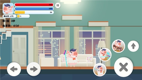 猪猪公寓2.0是一款由《爱情公寓》改编而来的小猪闯关冒险游戏,其高度还原了爱情公寓内的场景和人物。并且还完美的呈现了电视剧内的彩蛋,而玩家们要做的就是通过炫酷的连招和技能特效来闯过重重关卡。如果你细心的玩了一会游戏,你会发现每只小猪的三个技能都和剧中人物生活习惯息息相关。而且游戏内制作的怪物也是非常的有趣,如辣酱大魔王、拖鞋、香肠、牙刷之类的敌人。另外,猪猪公寓2.0满满的电视剧中的细节一定会让你感同身受,回到那个坐在沙发上有说有笑的看着爱情公寓的场景,有喜欢这类型游戏的小伙伴可以下载试试!