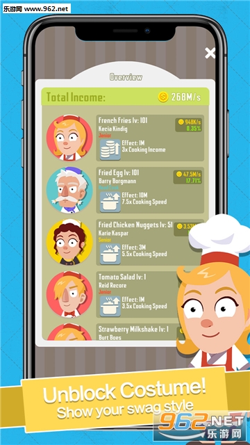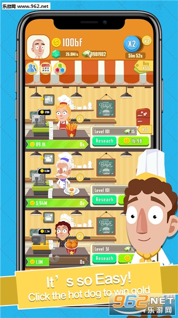 雇佣魔法厨师,探索新的食谱、购买新的分店、抢占市场并吸引天使投资者的注意以提高你的利润,创造全世界的美食帝国!