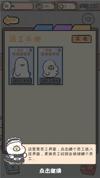 9、点击柜台的鸭子,里面是员工界面,玩家可以自定义更换员工的岗位