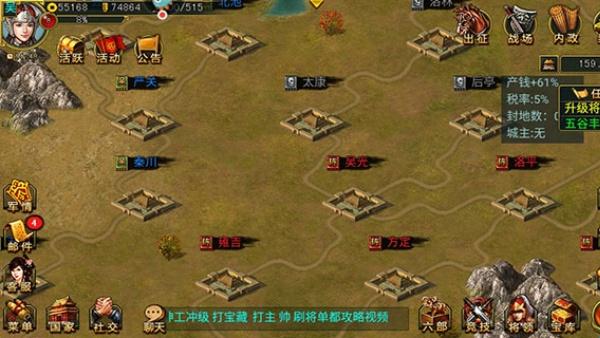 在新三国争霸中,除了独自操作自己的领地外,还可以与其他玩家展开互动。玩家可以组建联盟,共同对抗敌对势力;也可以发起联盟战争,与盟友一起征战沙场。这种多元素的互动设计增加了游戏的社交性,使玩家在游戏中结交新朋友。