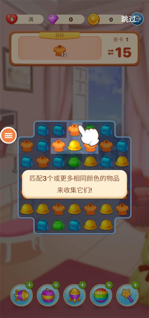 8、这里需要玩类似开心消消乐的游戏,匹配3个或更多相同颜色的物品来收集它们;
