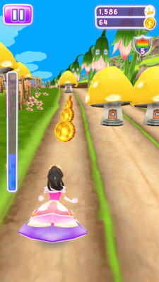 在童话运行 公主赛车赶你运行的时间越长,你跳过去的迹象,你会变得更快,鸟类和破折号过去的其他障碍,如由那些在森林和地铁等你花神奇的房子下面的幻灯片。童话运行