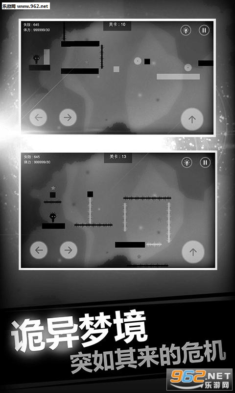 史小坑的恶梦是一款画风简介精美的休闲益智游戏,在黑夜降临之际,史小坑陷入了无穷无尽的恶梦世界,玩家的每一次跳跃都会引起游戏画面的黑白切换,重重关卡中隐藏了各种让你意想不到的机关陷阱,快来帮助史小坑逃离恶梦,挑战你的操作与智慧吧!