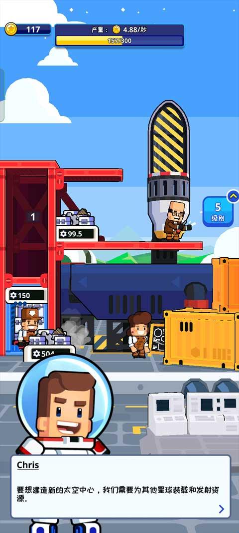 2、享受轻松的放置经营玩法,精美的卡通风格带给你不一样的游戏体验,现在就来打造自己的太空工厂吧。