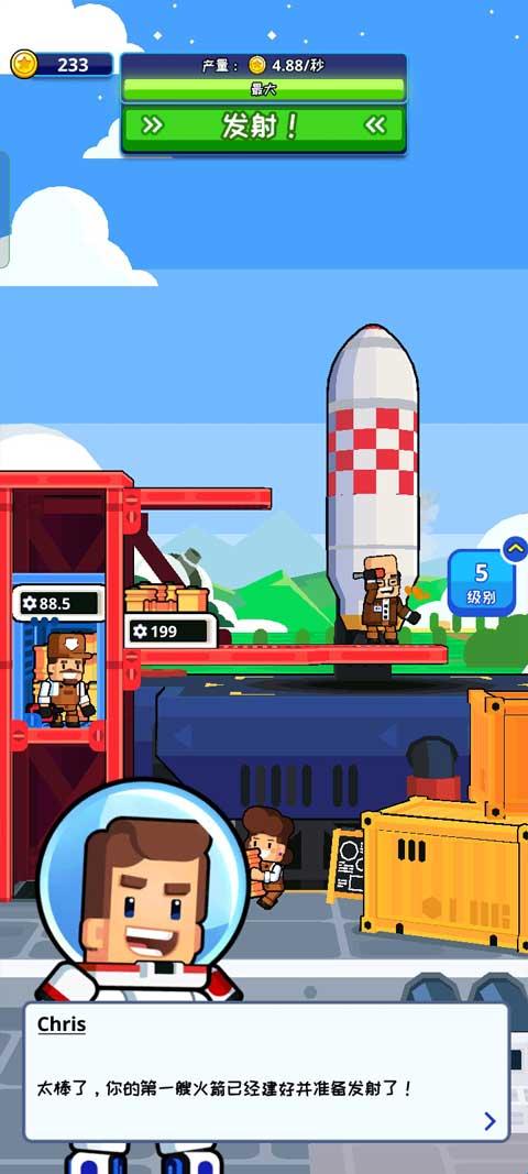 3、每当平台的工人装好火箭部件时,就能获得星币。