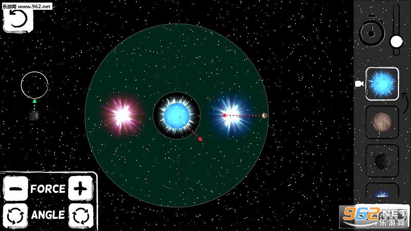 游戏是基于牛顿万有引力定律的重力模拟,您可以控制单个行星的速度和方向。你需要找到这颗行星的精确轨迹,让它围绕另一个天体运行。