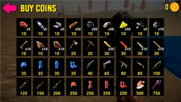 6、当然你还可以在商店中购买你需要的物品和装备 ,更好的在荒岛上进行生存;