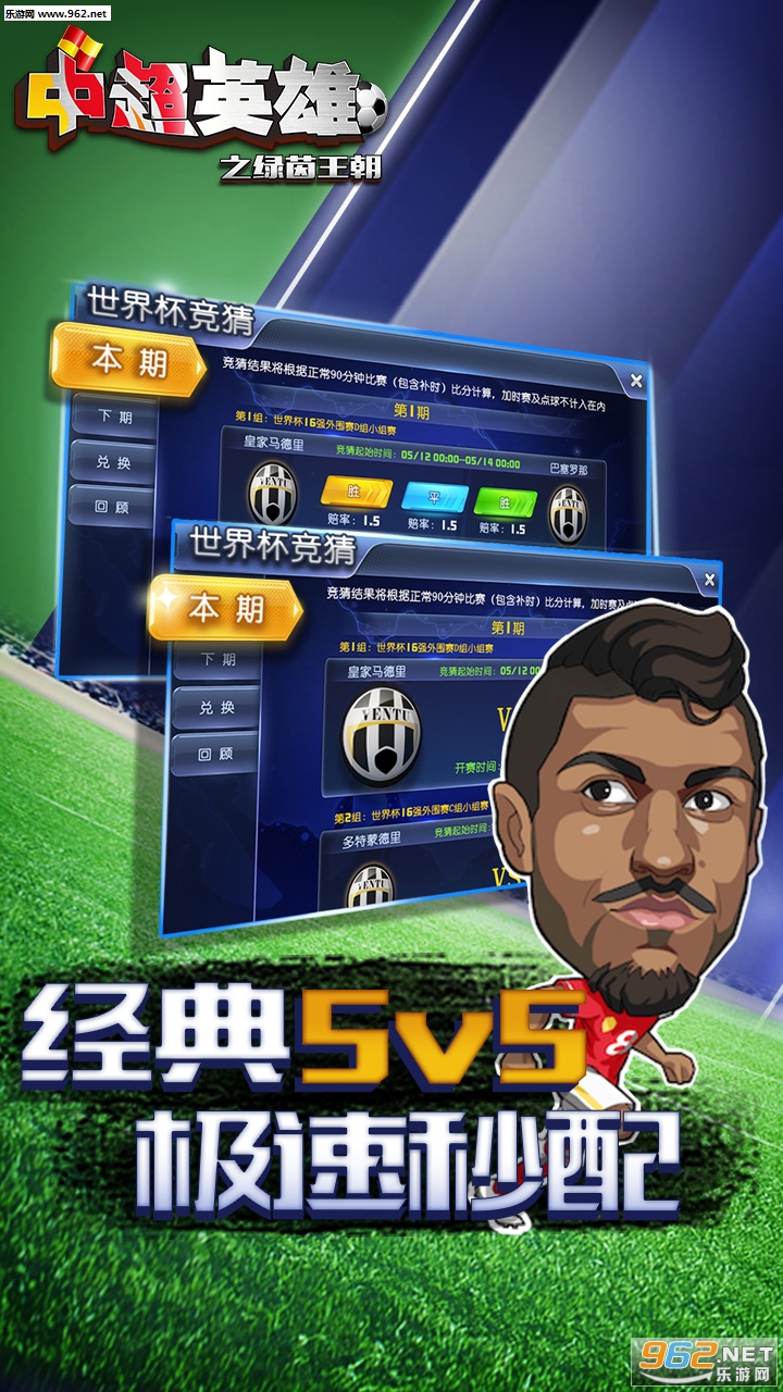 《中超英雄之绿茵王朝官方版》是官方正版授权Q版足球策略经营类游戏,游戏以足球竞技为主要的玩法,采用Q萌的画风,将知名的球星化身为卡通角色,采用5v5竞技的玩法,玩家在游戏中可以自由的搭配手中的球星,实时进行操控,按照你的想法,让他们在球场上传球,射门,体验足球竞技的乐趣!下面为大家带来中超英雄之绿茵王朝官方版下载!
