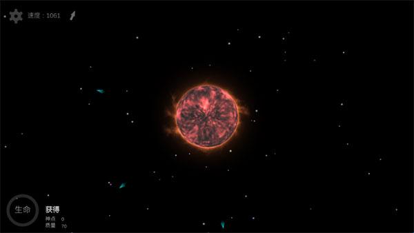 2、第一次转化之后是恒星。转化完之后就不要再苦哈哈的吸石头了。我到后期才发现这游戏一个设定是质量大的恒星会吸质量小的恒星的命。在地图上找到其他恒星之后,点一下左下角的生命会显示双方的生命,如果你的生命略高于对方,就可以慢慢靠近对方到一定距离,然后就开始吸对方的命了。吸到自己命占大优势的时候直接撞上去耗死对方。这个在中期涨质量特别快。基本上二十多级的时候玩上半小时就好几百级了;这个方法有两点注意的:一个是比自己质量高的会被吸,一个是岩石星球没法吸。