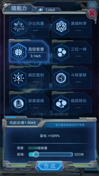8、我们通过以上的发展方法,不断获取新的东西,并且不断提高生产速度,获取新的技能等,最后就能合出整个宇宙,在游戏中发展的更快更好。