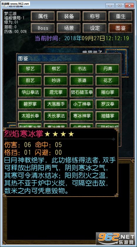 2、游戏画面简单,在游戏中添加了8首背景音乐,还有图鉴功能,所有的武功都可以看见;
