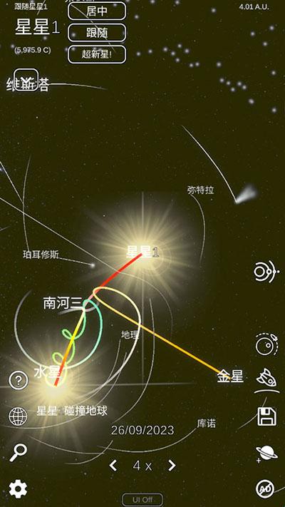 4、你还可以自行放置天体改变它们的运行轨迹。