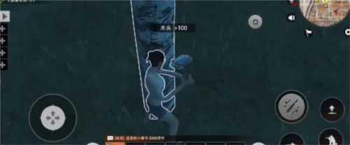4、通过虚拟按键控制人物对,树木、石头等物体进行交互获取资源。