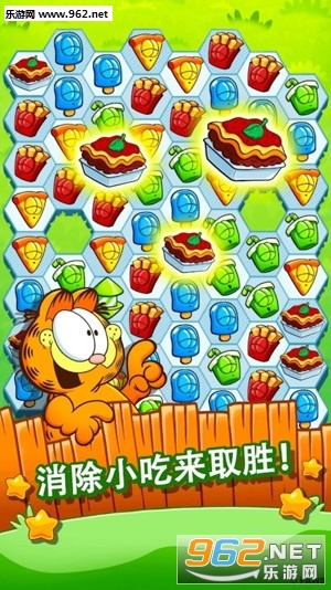 如果你喜欢加菲猫与垃圾食品,那么这款油腻的消消乐手游一定对你的胃口。消除屏幕上的小吃让加菲猫和朋友们成功吃到这些食物,有6个游戏模式、1200多个关卡等你来挑战哟!