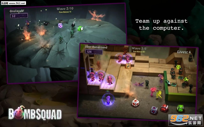 《炸弹小队bombsquad》是一款十分有趣的竞技手游,在一个狭小的场地,玩家们需要展开激烈的扔炸弹对决,全员最先阵亡的一方即失败。由于炸弹对双方都会有伤害,你必须扔完就走,同时还要注意队友炸弹的误伤。总而言之你完全不能停下来,一定要保持与所有炸弹的距离,坚持苟活到最后吧!