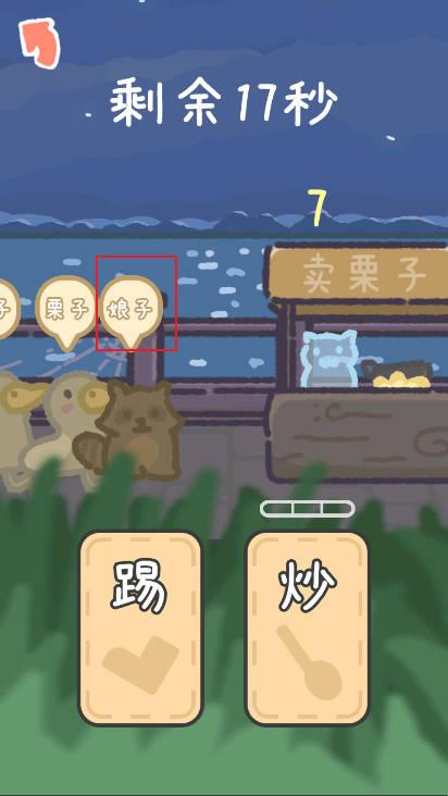 2、游戏中咱们是卖炒栗子,遇到头顶写着栗子的顾客就点击炒。