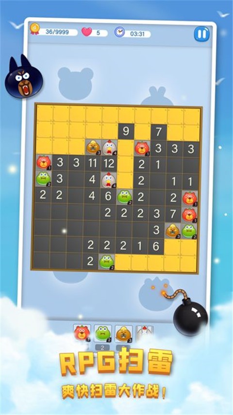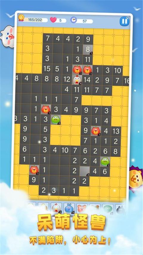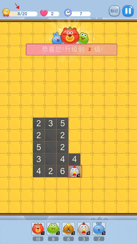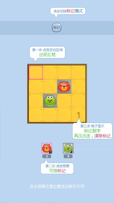 4、游戏中的标记模式操作步骤:第一步,点击空白区域使出现红色框框;第二步,点击怪兽可做标记;第三步,各种显示标记数字,再次点击就能清楚标记。