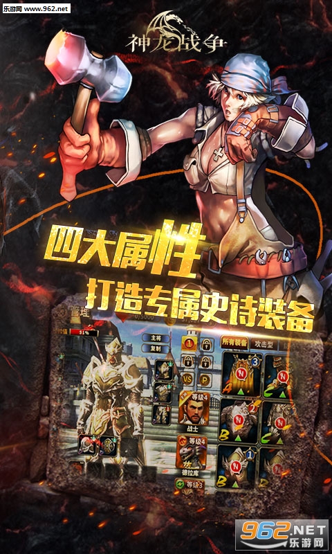 《神龙战争》是以在神话时代,五位英雄遗物继承人合力封印魔王为故事背景,横版角色扮演类手机网络游戏,并带有动态骑乘,独特的佣兵系统,流畅的打击感,华丽的 技能连招,让玩家感受不一样的游玩体验。英雄战,组队战实时pk对战。更有工会战,攻城战,攻城略地,火爆竞技!