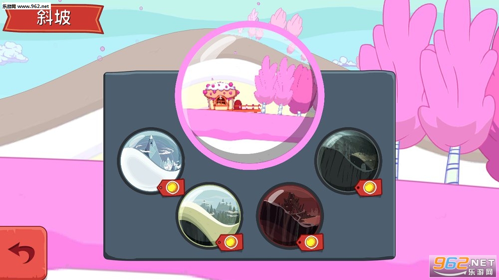 3、滑雪的场景有好几个,糖果王国、寒冰王国、生米山峦、火焰帝国和地牢等多个地图等你来解锁,还可以选择人物和骑行的动物,可以自己玩,也能带上你的朋友一起冒险;