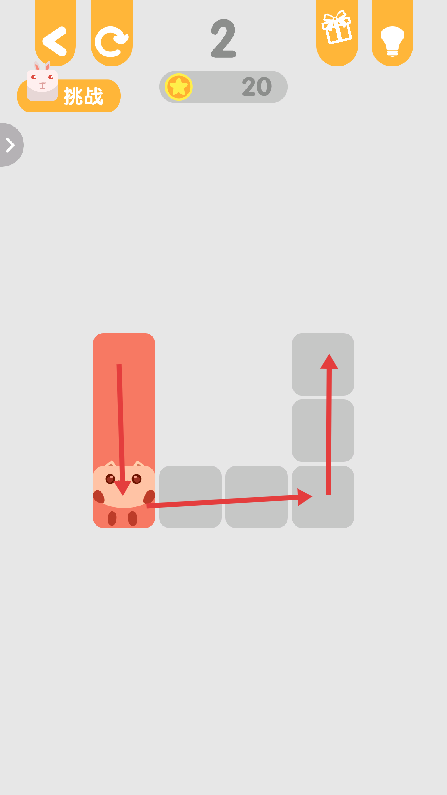3、跟随红色箭头指引的路径滑动屏幕,让动物沿路线连接方块,实现一笔画操作。