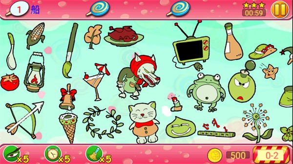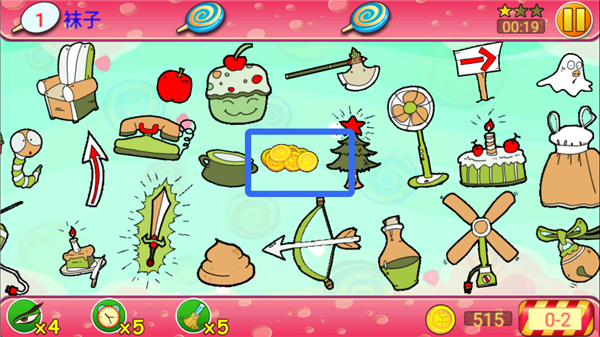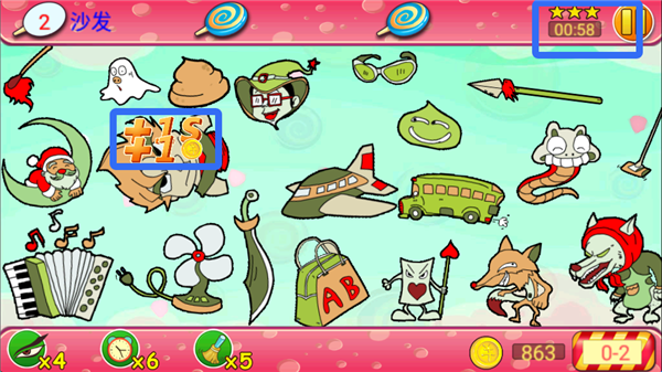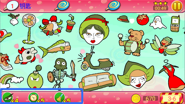 2、每关都有倒计时,每找到一件物品都会获得时间和金币,玩家需要在倒计时结束之前找齐物品。
