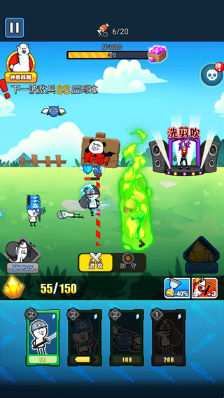 4、放置战斗、兵种随心搭配,玩梗娱乐两不误。