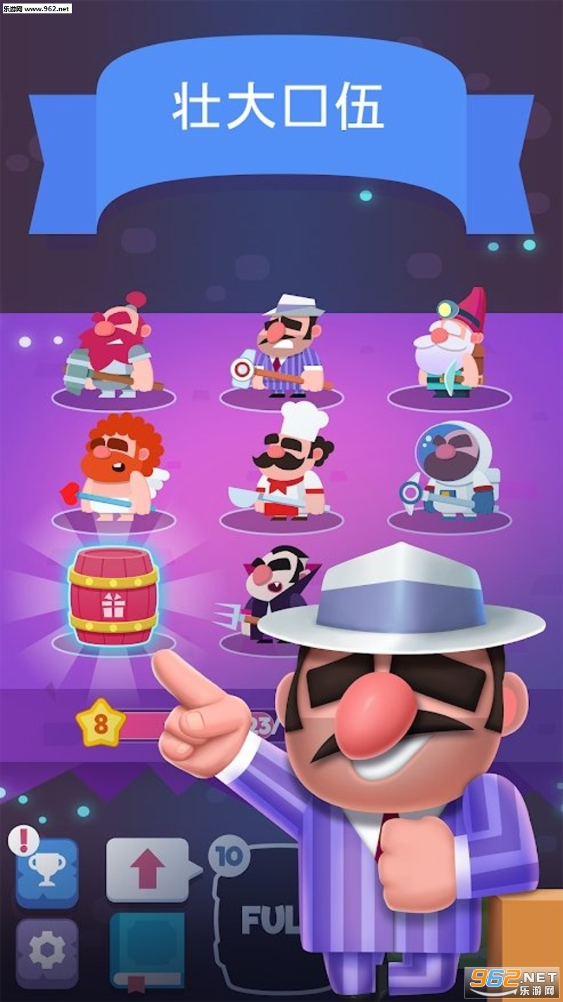 成为最快的敲击者。不要让他们闲置太久。赶快拖动相同的矮人,合并他们,解锁新的形象 - 篮球运动员、金刚狼、福尔摩斯和其他形象。创建您自己的不可思议的角色方队,准备好获得黄金吧。获得超级多的奖励和礼物。挣得越多,您就可以购买更多的“小小英雄”,扩充您的收藏。