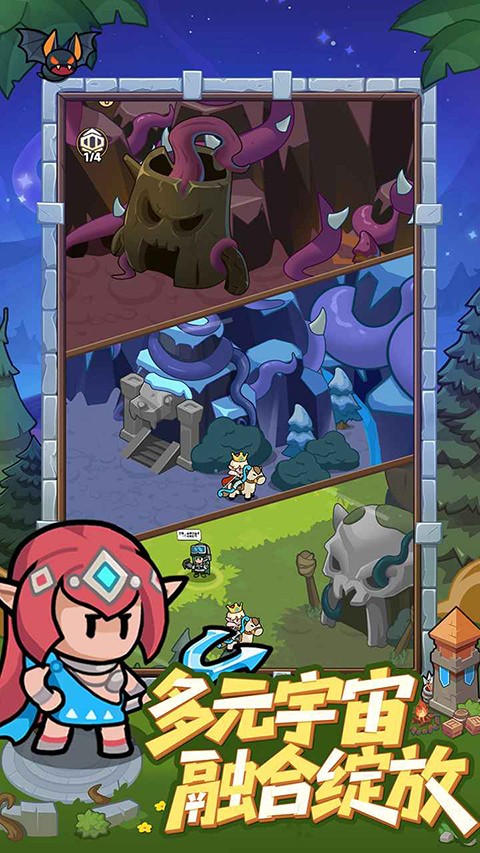 3、RPG式英雄培养系统:通过收集碎片解锁并升级英雄,每位英雄拥有专属技能与成长路线。可自由搭配武器、天赋,强化攻击、防御等属性,打造个性化英雄阵容,融合RPG养成乐趣。