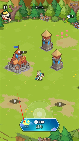 1、初始建设阶段:进入游戏后优先建造「防御箭塔」和「骑士营地」,箭塔提供远程输出,骑士营地生产近战单位,形成基础防线,升级「民房」提升金币收益(每日6金币),确保资源持续积累。