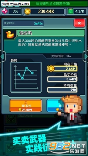 运用你在股海投资多年的经验,投资有潜力的企业和炒卖黑市资源。从图表中预测市场趋势,或让你的手下帮助你进行交易,目标是 - 再次成为亿万富翁!随着你的成长,你会得到粉丝的鼓励,并收到免费的礼物,邪恶世界就是令人如斯著迷!