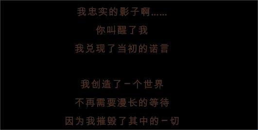 畏:影子的眼睛和笑容,实际上是指躲在黑暗中的某种存在,暗示了游戏情节的战胜黑暗部分。