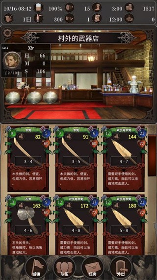 4、冒险的主旋律就是衣食住行,在城镇中做好修整,让我们漫步在这个广阔的世界上。