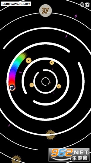 《地狱盘旋手游安卓版》是一款十分好玩有趣的休闲街机敏捷闯关类游戏。游戏的玩法非常的简答,但是想要获得高分可没那么的容易,在游戏中玩家需要控制一个小球在一个环形轨道上运动,这些轨道上生长着许多危险的齿轮,你必须要灵活交换小球在内外圈的位置才能够躲避这些齿轮。感兴趣的小伙伴儿赶快来下载试试吧!