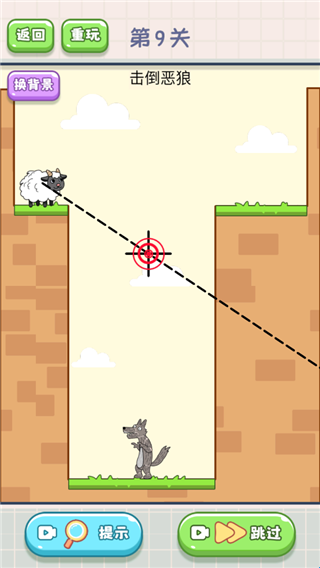 3、游戏还在开发过程中,后期会加入更多好玩的休闲小游戏,比如这个击倒饿狼,羊发射出子弹通过反射将狼打死。