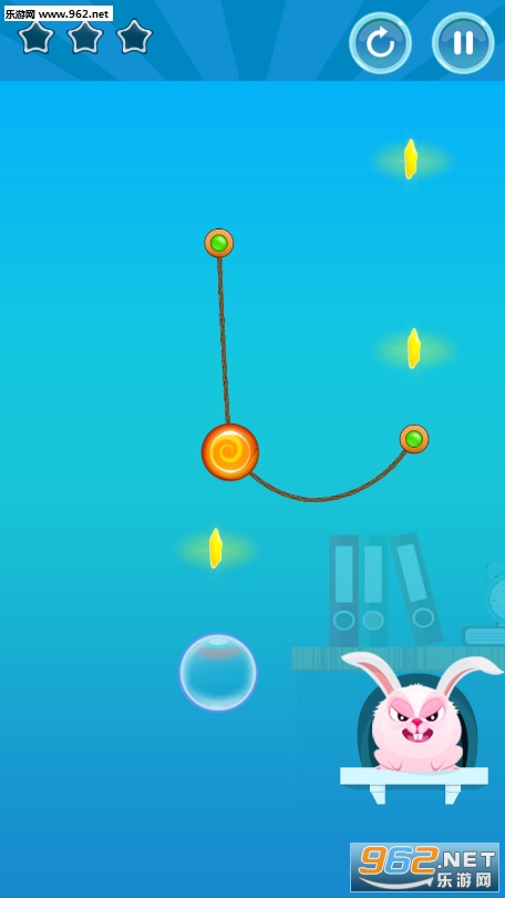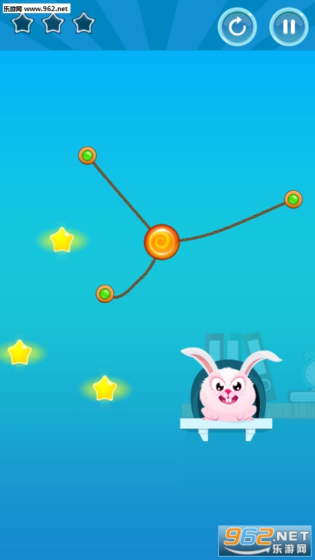 当小兔子吃到糖果你才能拿到下一个关卡的通关钥匙,收集星星也很重要哦;