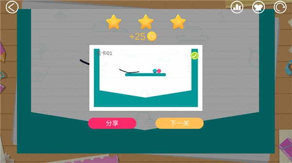 5、道具与皮肤:玩家可以通过积攒金币来更换游戏中笔的样式、小球的皮肤以及游戏背景。