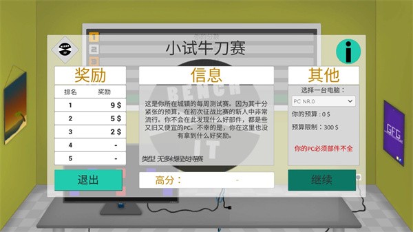 1、游戏刚开始的时候只有400美元,但是这400要是想组装一台好的电脑是不太可能的,所以要组装好的电脑只有不断赚钱 ,刚开始的时候尽量不要去自己组装电脑比赛,比赛奖金太少,一场比赛下来的钱一个配件都买不到。所以主要赚钱方法就是帮其他人组装电脑,刚开始跳过几天会收到一个电子邮件,那个就相当于订单吧,组装电脑他上面有一个要求,你的目的就是组装起来的电脑能达到他给的要求,达到要求之后就可以把电脑卖给他